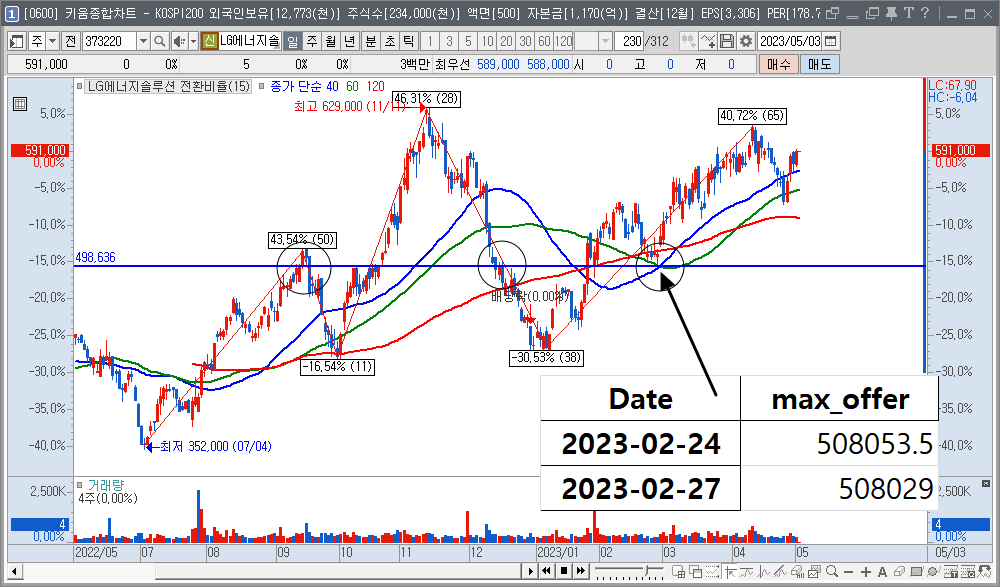 오늘은 LG에너지솔루션에 대한 전고점돌파이자 최대 매물대를 돌파한 후 눌림목 구간 포인트를 알아보도록 하겠습니다.